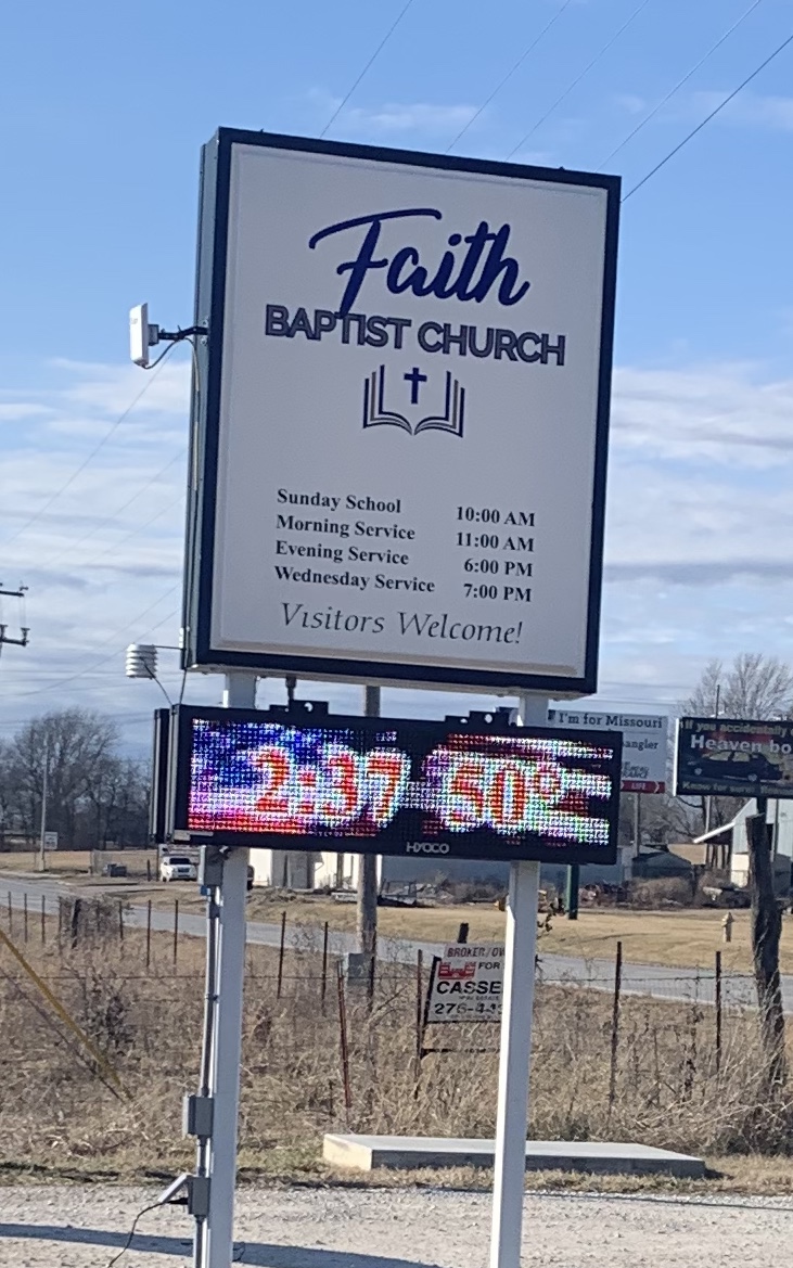 Whatever your business, church or home sign needs are: wall verses, banners, storefront windows, vehicle advertising and graphics, road safety signs and free-standing business signs!